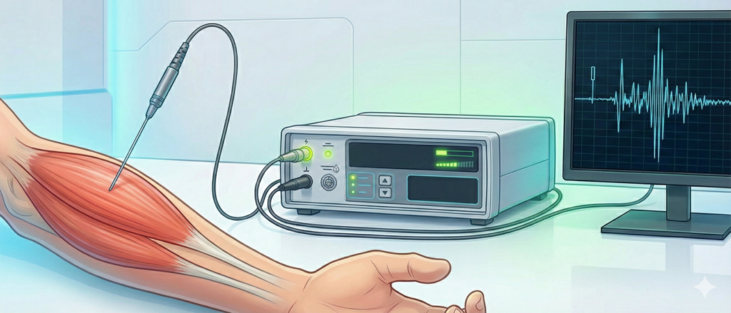 В данному документі розглядається основне призначення стимуляційної електронейроміографії. Наголошується на важливості проведення такого обстеження для широкого спектру патологій. Наводяться основні критерії призначення данного обстеження пацієнтам різних вікових груп. Розглянуто основні методи стимуляційної ЕМГ, а також параметри
