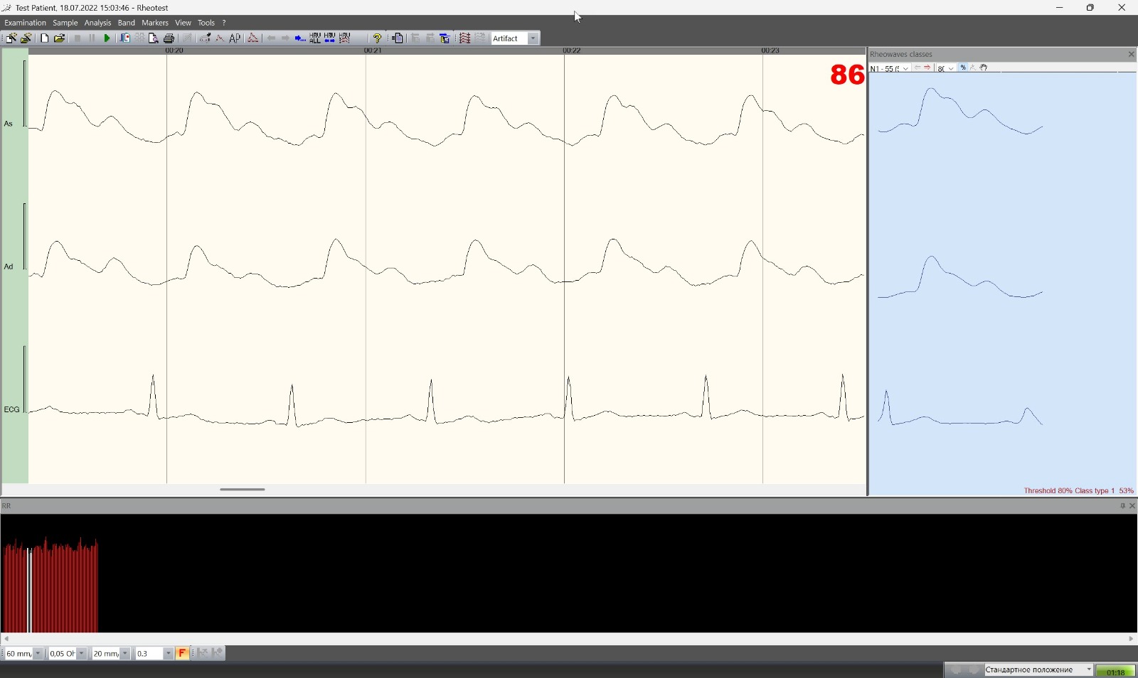 Програмне забезпечення реографа виконує автоматичне виділення і класифікацію реокомплексів за допомогою міток (регулюються вручну)