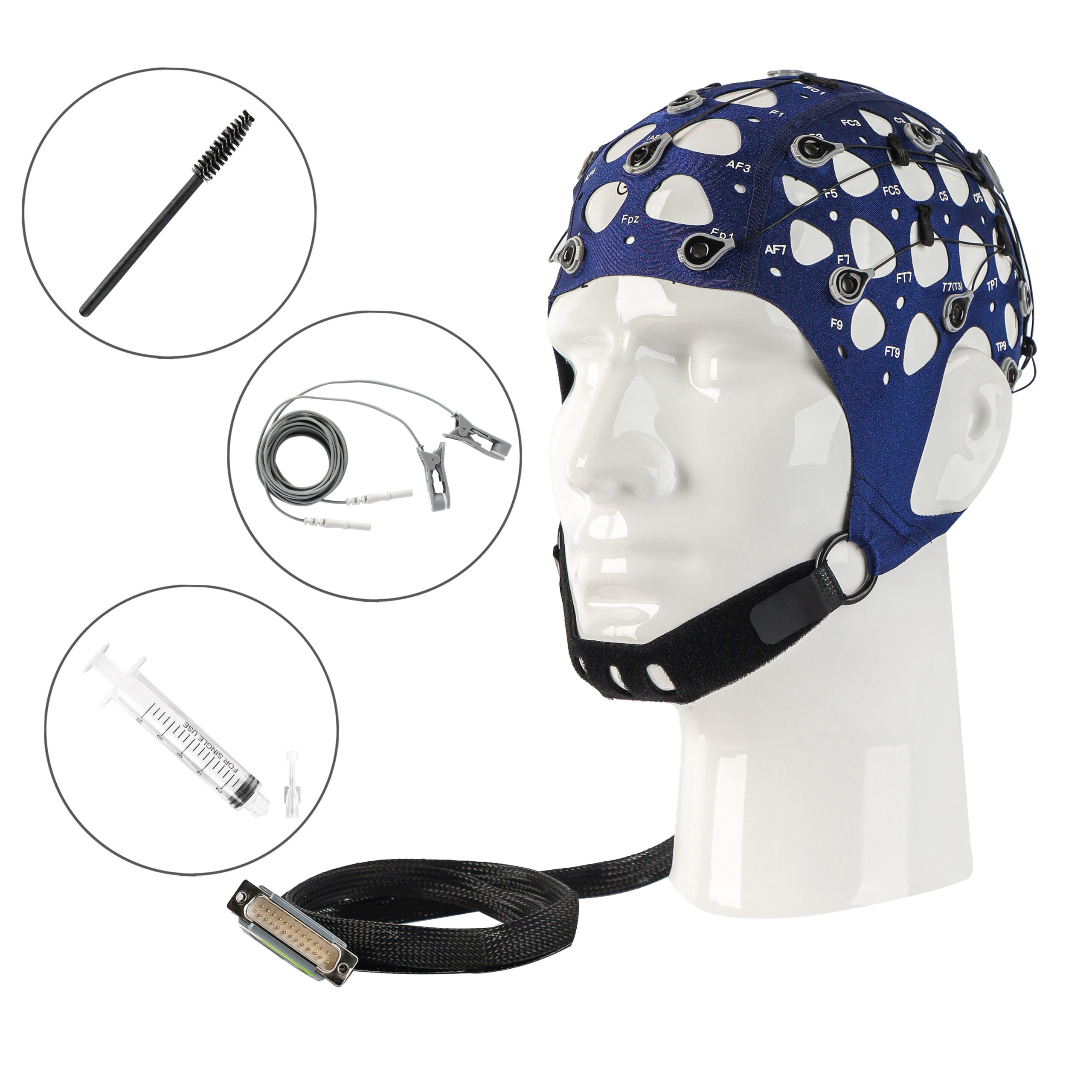 У шапочці інтегровані 22 струмопровідні електроди Ag/AgCl, розташовані відповідно до міжнародної системи 10–20, що забезпечує точне та стабільне зчитування сигналу.