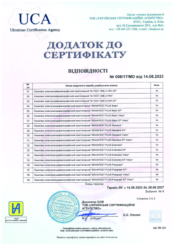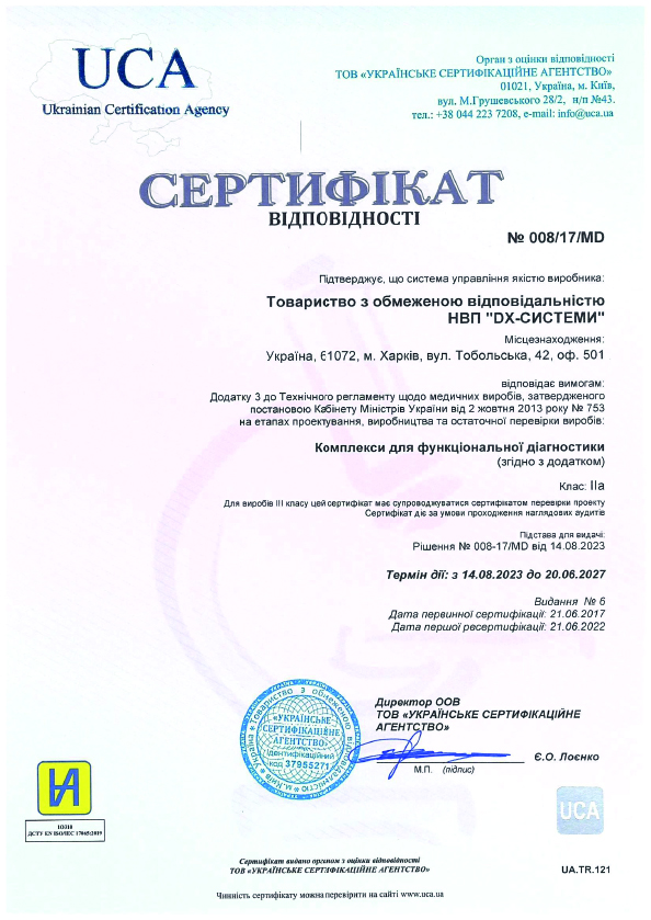 Медицинское оборудование отвечает требованиям Технического регламента по медицинским изделиям, утвержденному Постановлением Кабинета Министров Украины от 02 октября 2013 г. N 753 и Директивы Европейского Совета 93/42/ЕЭС от 14 июня 1993 года по медицинским изделиям с учетом переходных положений (ЕС) 2017/745 от 5 апреля 2017 о медицинских изделиях